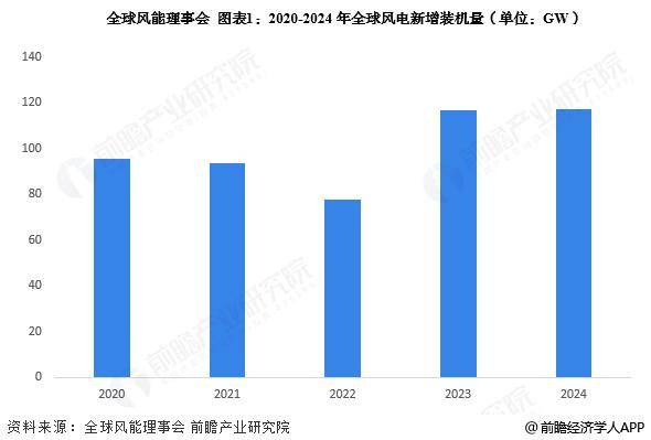 全球风能理事会(GWEC)在《2025全球风能报告》中指出,2024年全球风电新增并网装机容量达到117GW,创下历史新高。其中,陆上风电新增109GW,海上风电新增8GW。