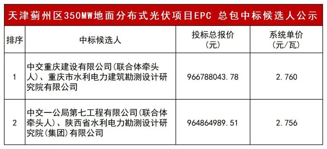 第一中标候选人:中交重庆建设有限公司(联合体牵头人)、重庆市水利电力建筑勘测设计研究院有限公司